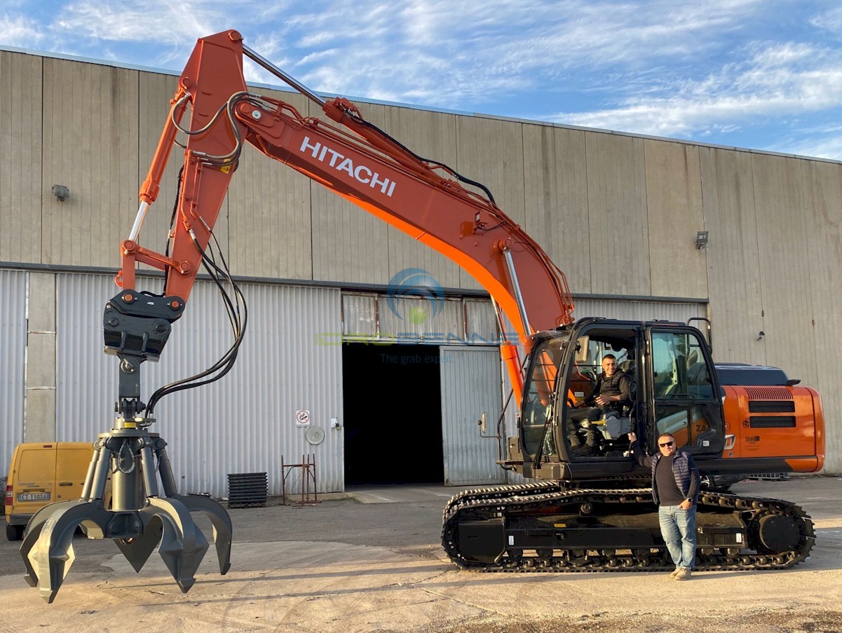 Orange peel grapples are multi-tines gripping devices. Each tine is set in motion by a double-acting hydraulic cylinder. For that the jaws, or teeth, have a synchronized, but independent, movement of opening and closing. The number of tines vary from four to six. This feature makes polyp grapples particularly suitable for the collection and handling of large quantities of bulk materials such as metal scrap, paper, tires drive, solid urban waste and firewood. They can be mounted on truck cranes, mini excavators, stationary cranes, hydraulic excavators and wheeled loaders.