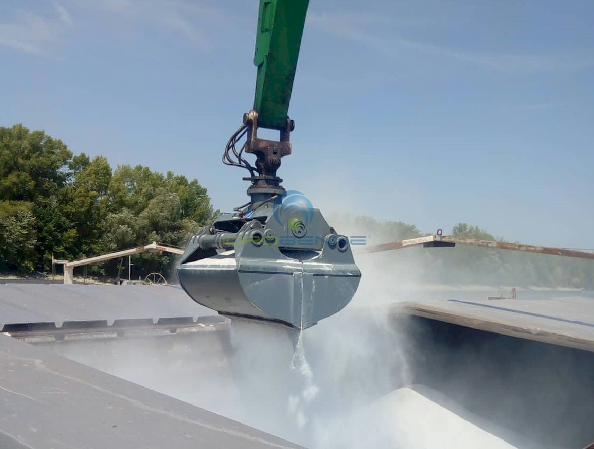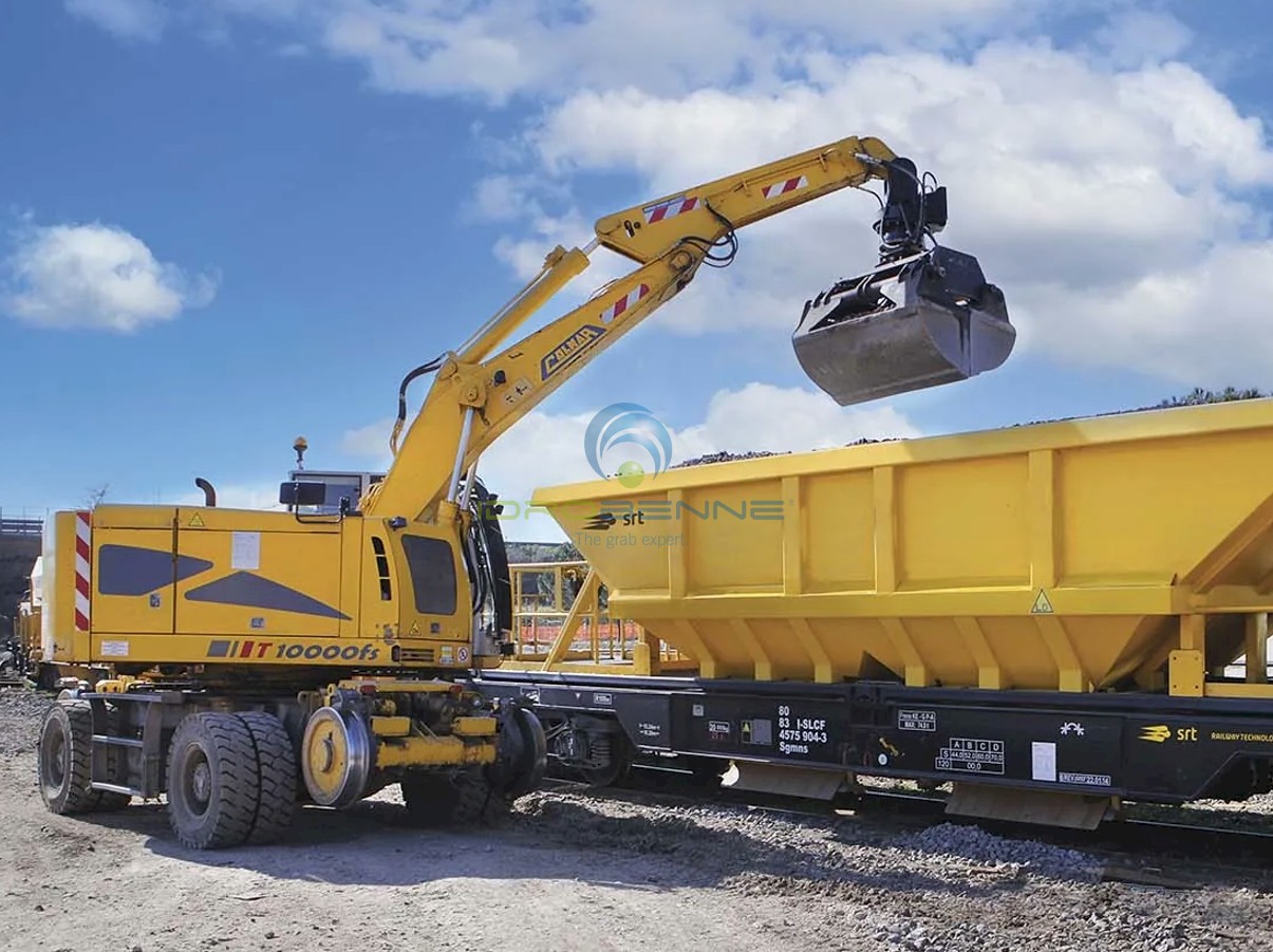 Clamshell bucket for excavator, designed for loading large quantities of aggregates.