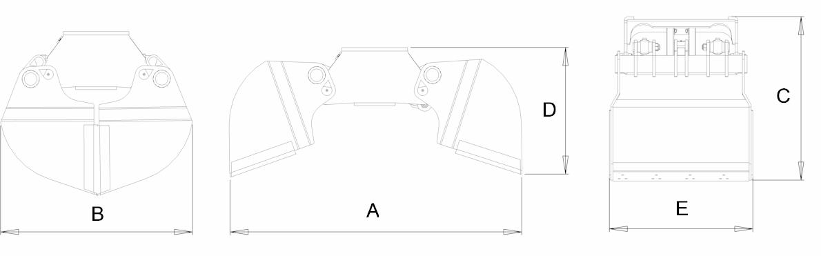 Clamshell buckets are gripping devices formed by two shells in synchronous movement, put in motion by hydraulic cylinders. In general terms, these attachments are suitable to load of gravel, sand and earth, or to the dig hard soil and compact surfaces. Depending on the constructive geometry and accessories, clamshell buckets can have a specific application. They can be mounted on a wide range of machines, such as truck cranes, backhoe loaders, mini excavators, agricultural machines, stationary cranes, material handlers, harbour cranes, rail road excavators and so on.