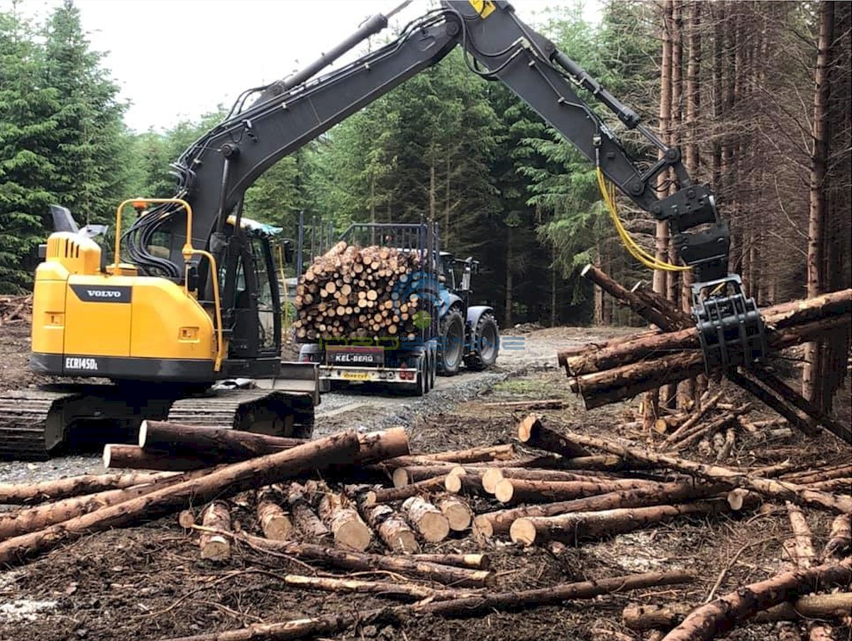 Pince hydraulique à doigts pour la manutention de troncs et de branches, la construction de parois rocheuses, le chargement de déchiqueteuses, la mise en place de roches pour la remise en état des berges et une foule d'autres applications.